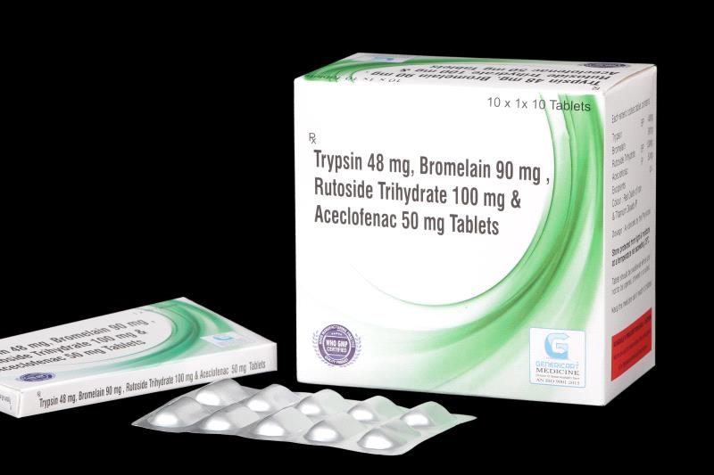 Trypsin 48 MG,Bromelain 90 MG,Rutuside Trihydrate 100 MG & Aceclofenac 50 MG tab